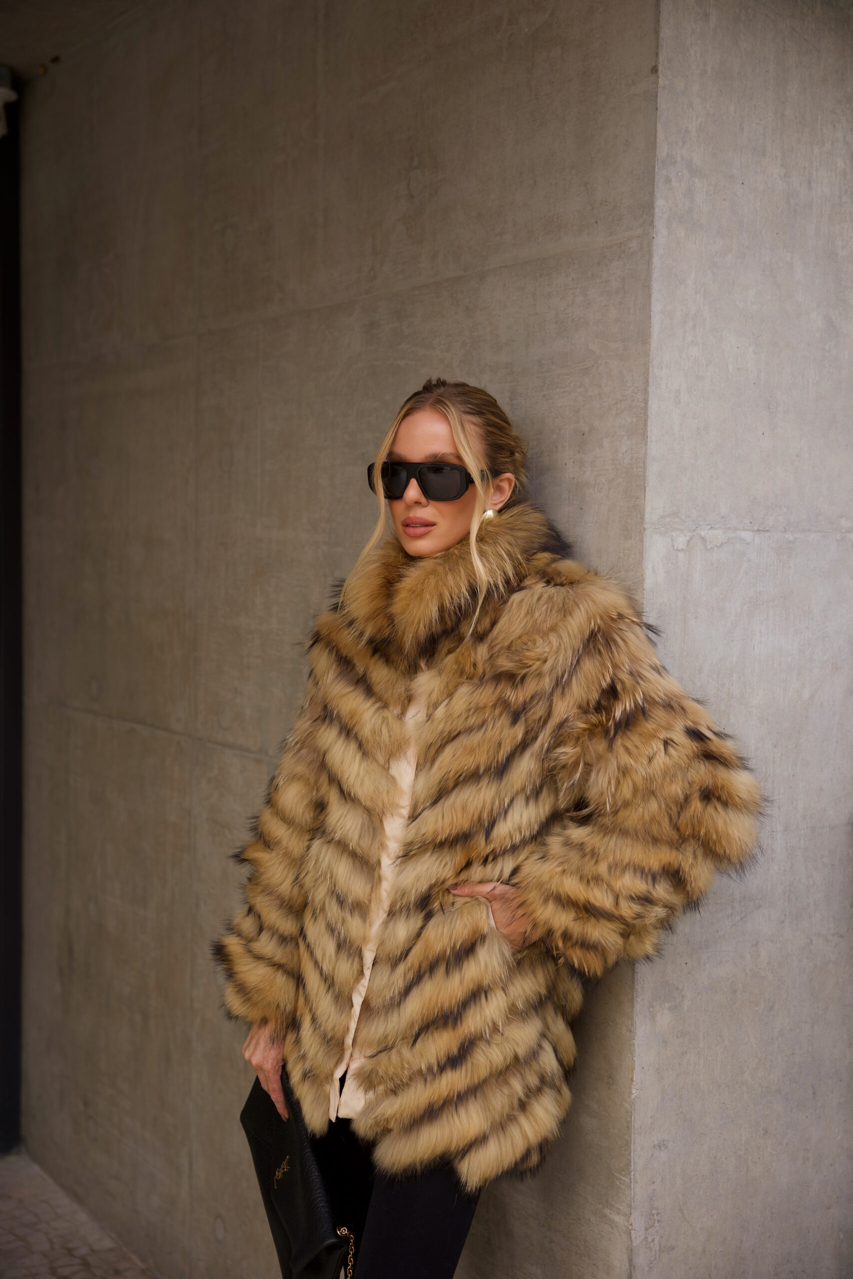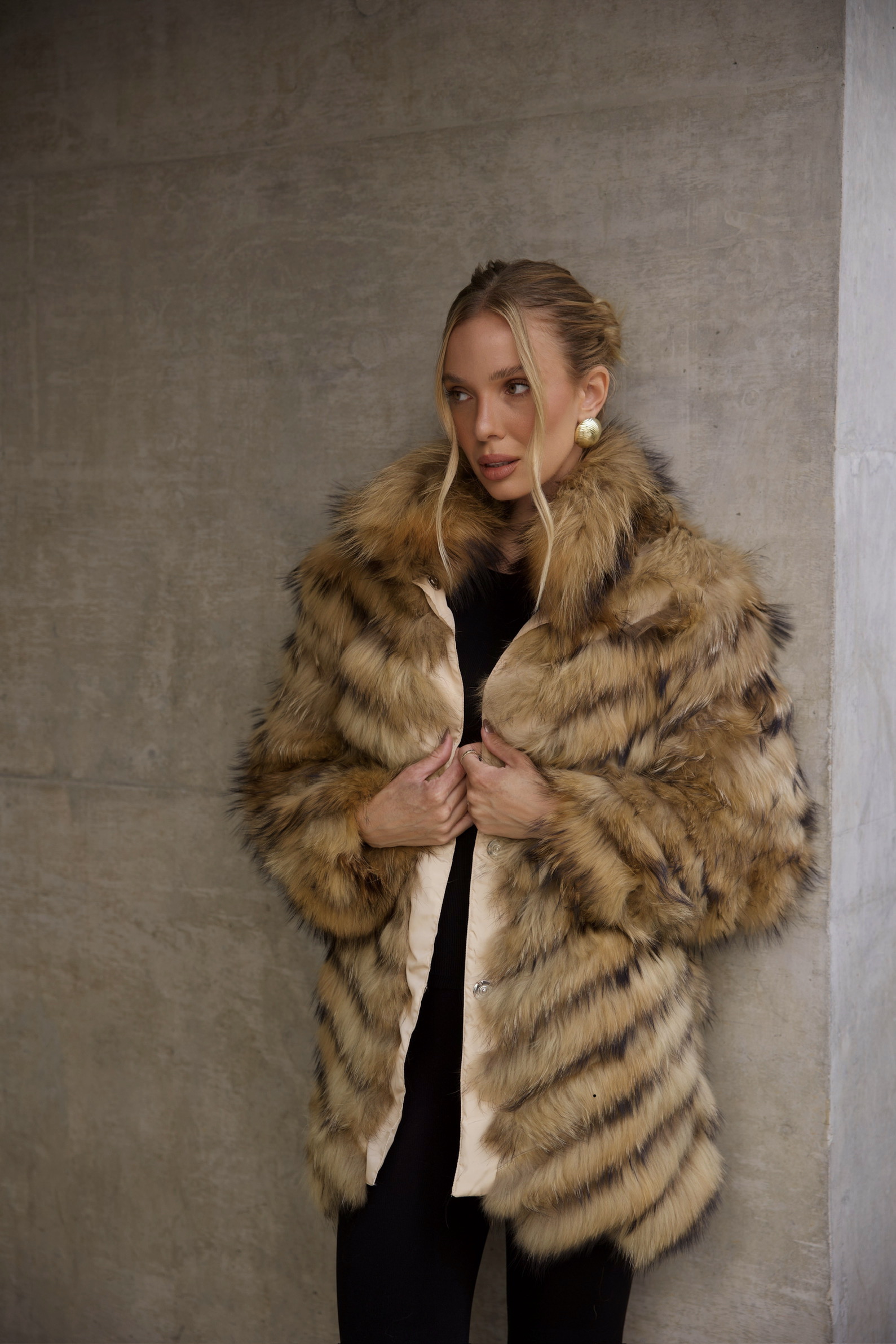 O Casaco Reversível longo é uma verdadeiro luxo, confeccionado com pele natural de alta qualidade em um lado e nylon premium no outro, proporcionando versatilidade e estilo incomparáveis.
