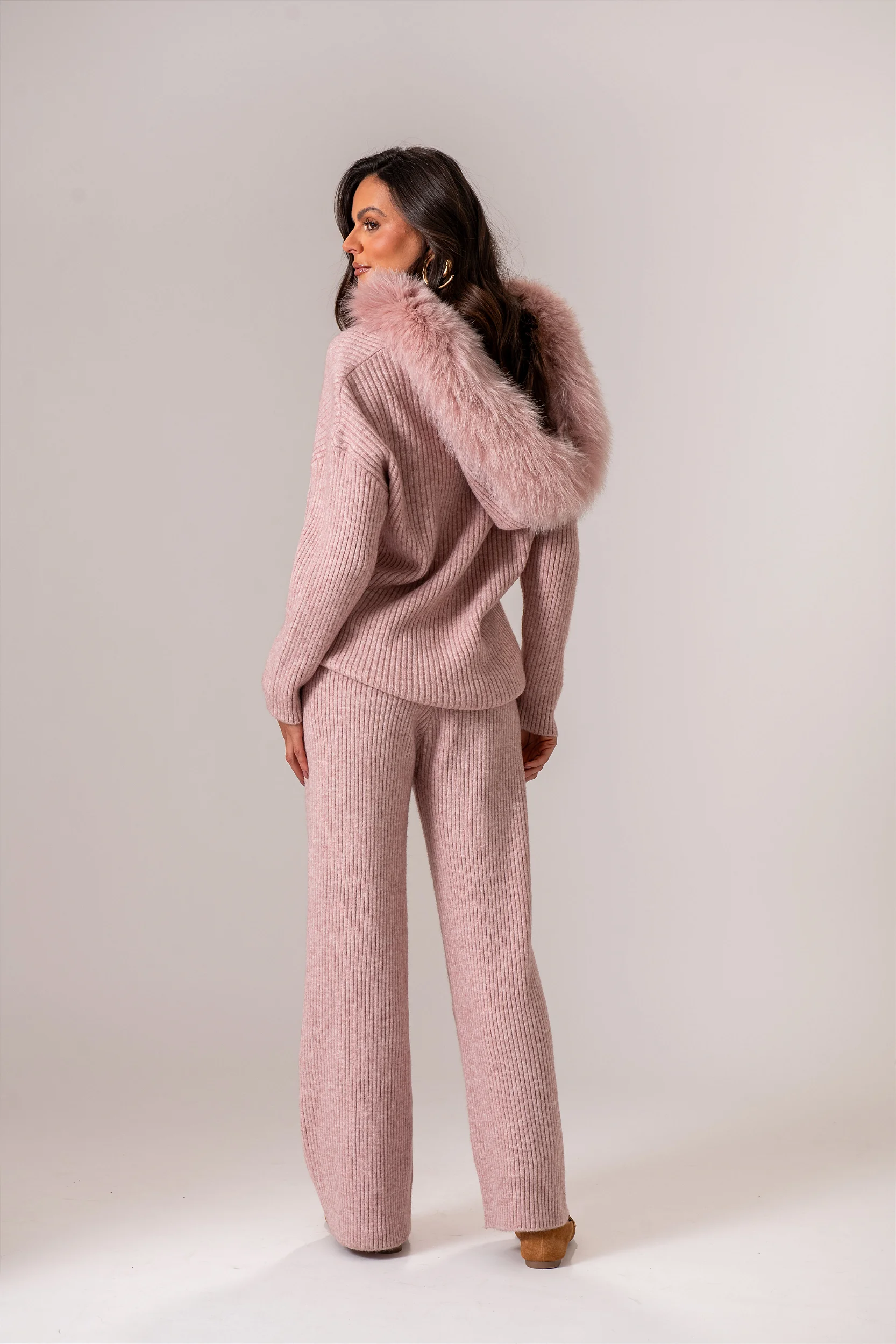 temporal, elegante e incrivelmente confortável. O Conjunto Paris é confeccionado em malhacanelada de toque ultra macio, com modelagem ampla e caimento leve. A blusa possui capuz com detalhe de pele removível, gola com amarração e mangas longas. A calça de cintura alta tem cós elástico e pernas retas, garantindo liberdade e sofisticação.