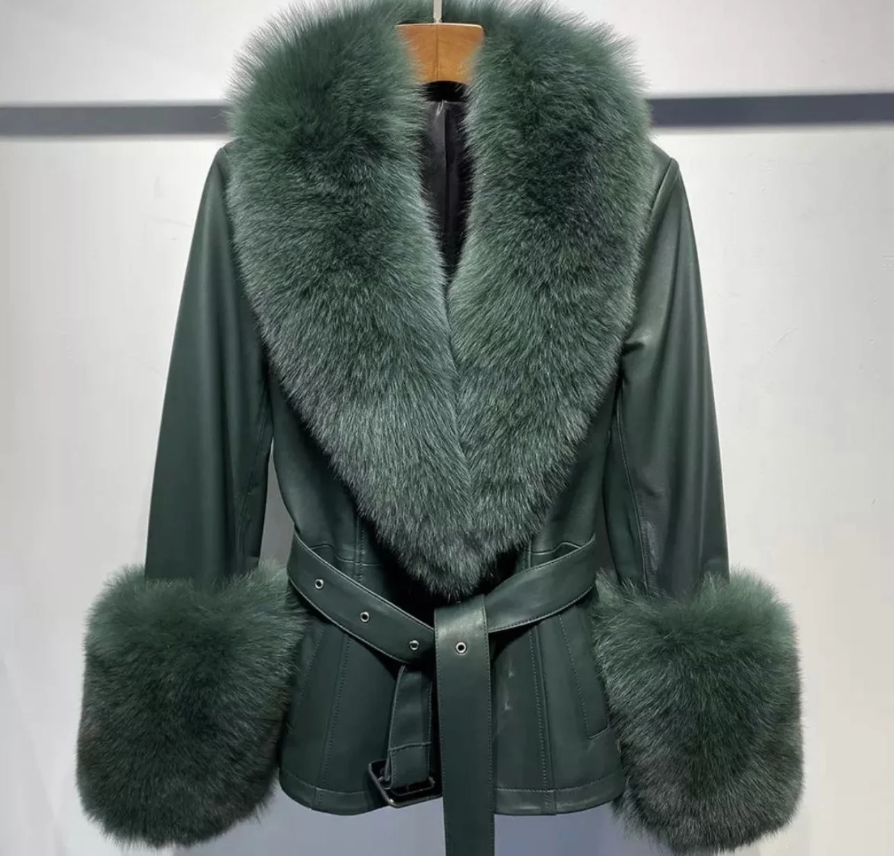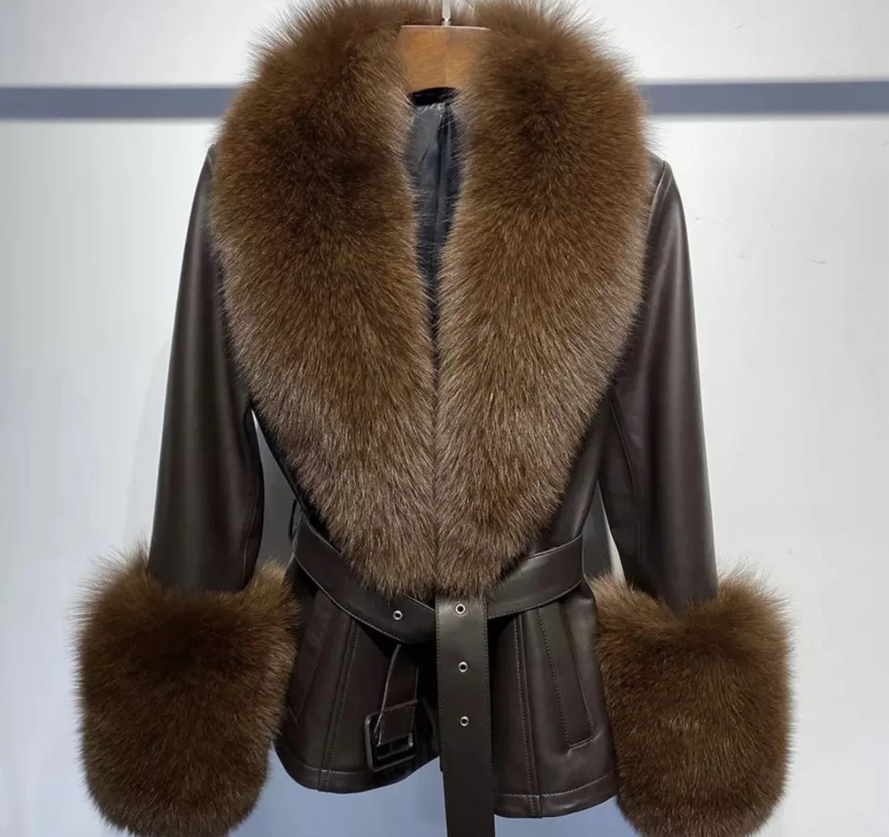 – Maxi gola e punhos 100% pele natural (removíveis)