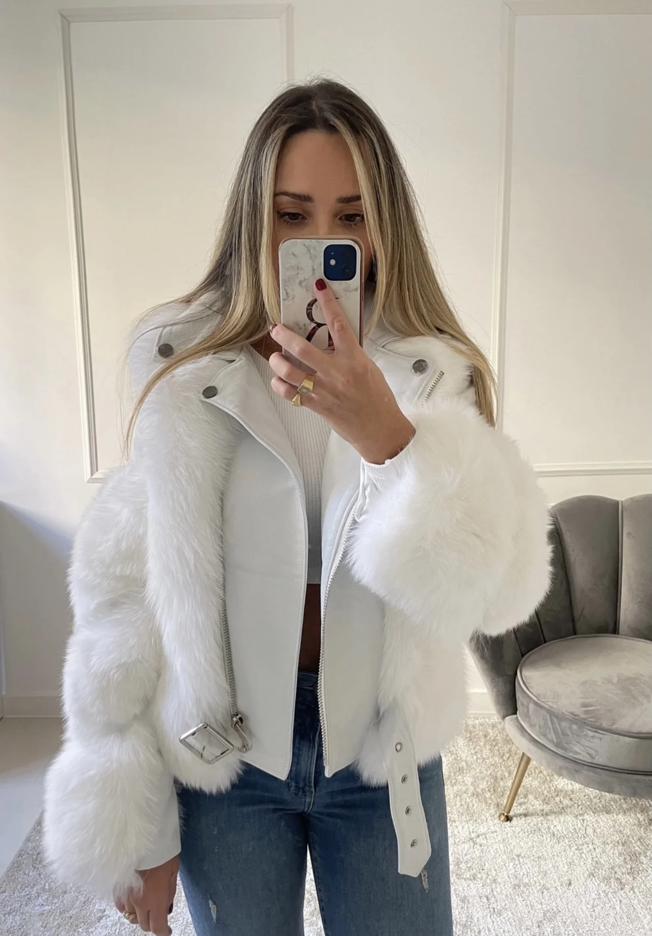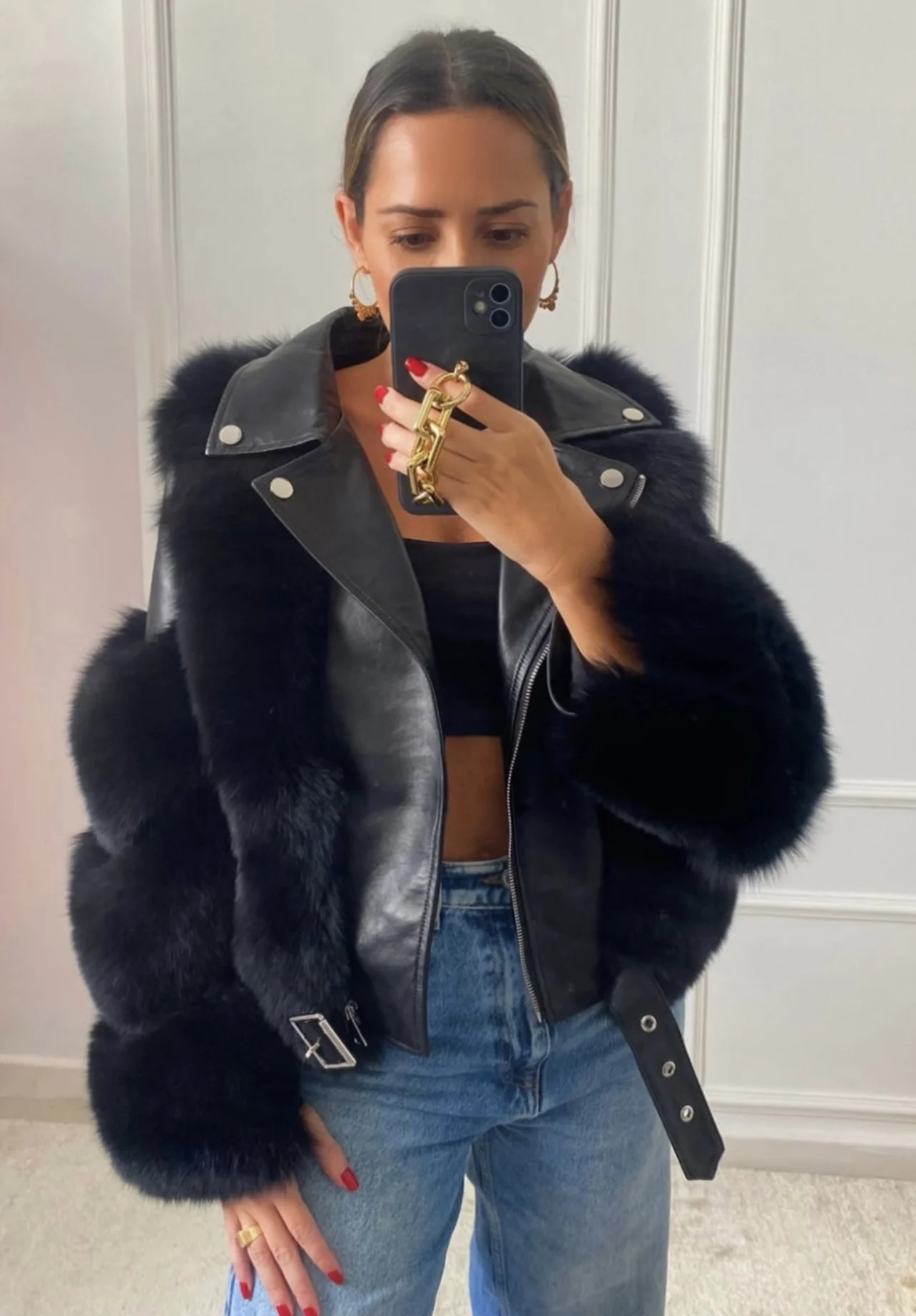 A Jaqueta é feita com couro legitímo e pele natural premium. Seu design moderno e urbano combina com uma variedade de looks. Peça eterna.