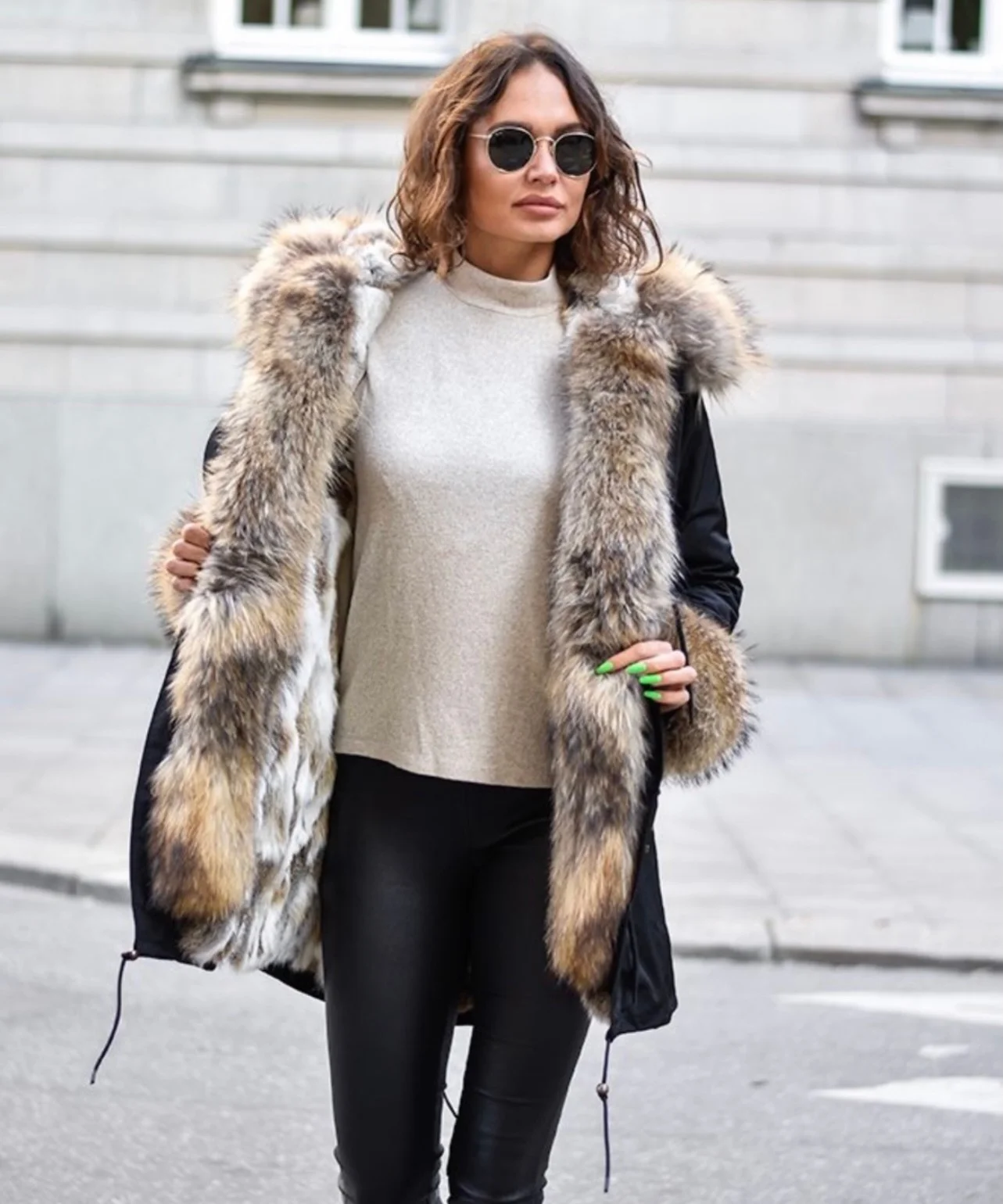 – Forro, punhos e gola do capuz 100% pele natural (removível)
