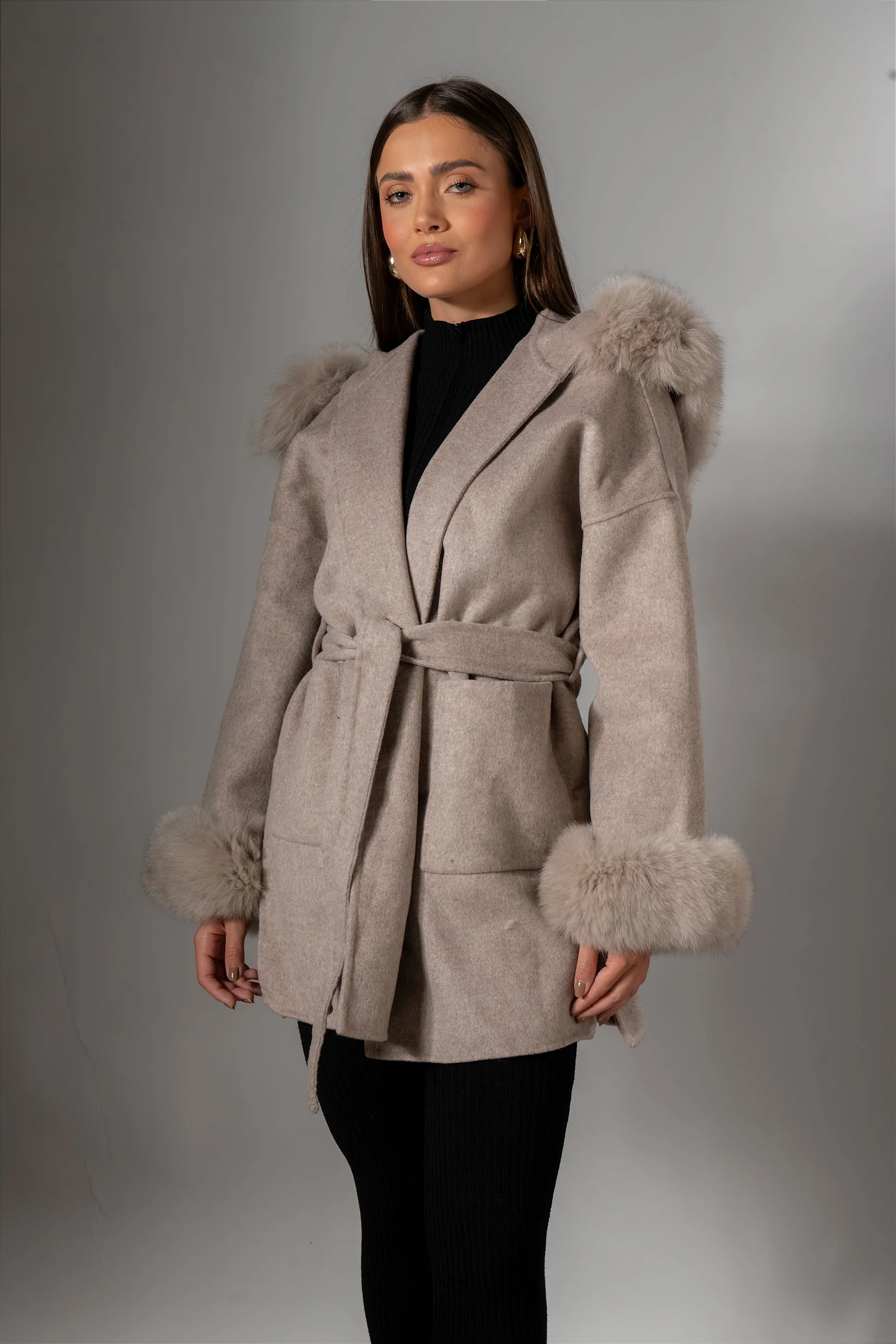 O Sobretudo Curto Cashmere é confeccionado com lã de alta qualidade, escolhida pela sua maciez e conforto.