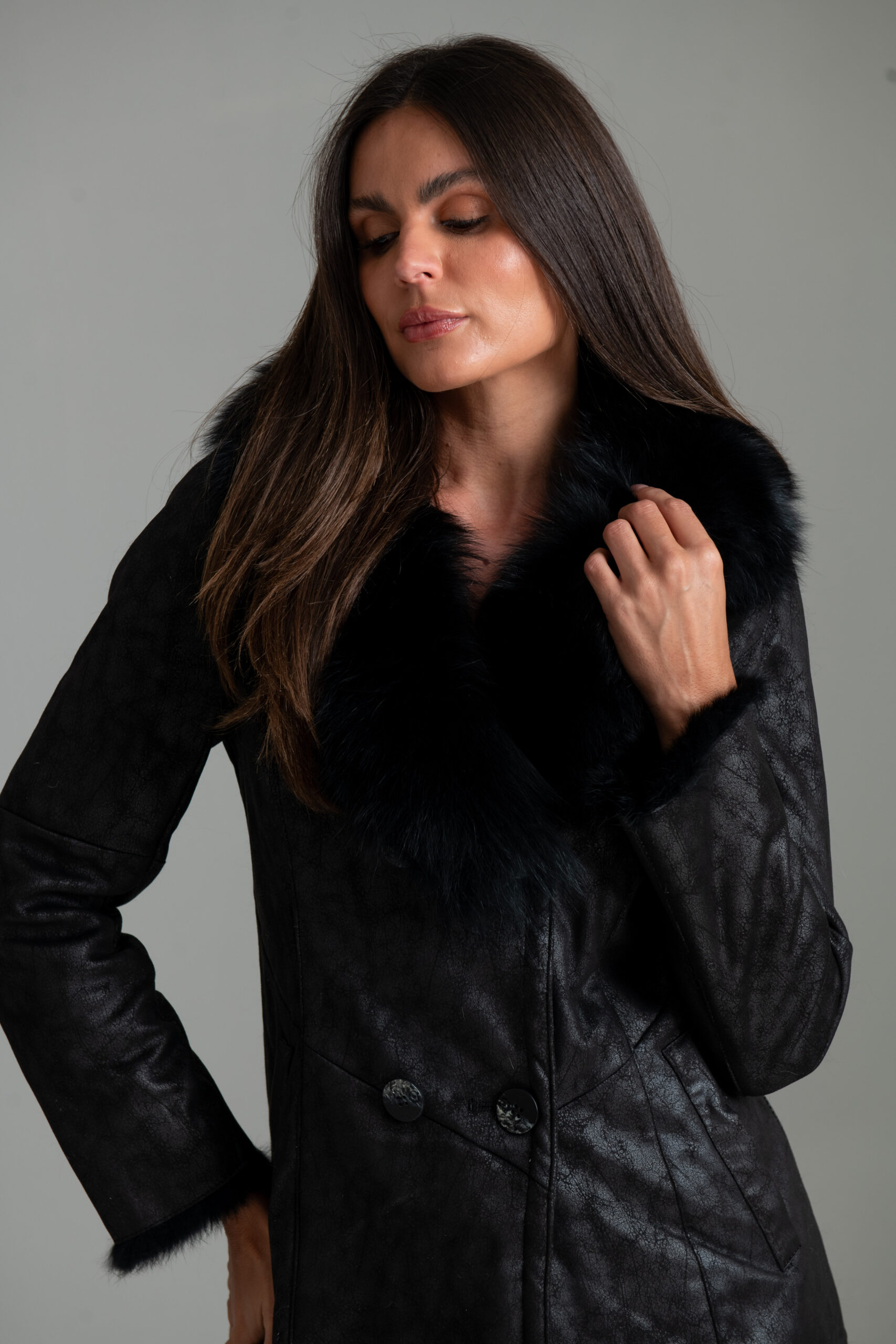 O Sobretudo Forrado é confeccionada em couro genuíno e pele de raposa, é a mistura perfeita. Seu design moderno e elegante combina com uma variedade de looks