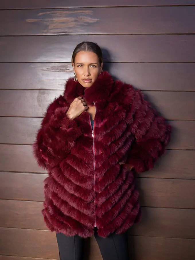 Gola de pele de raposa destacável e punhos de pele de pulso (3 x 1 casaco)