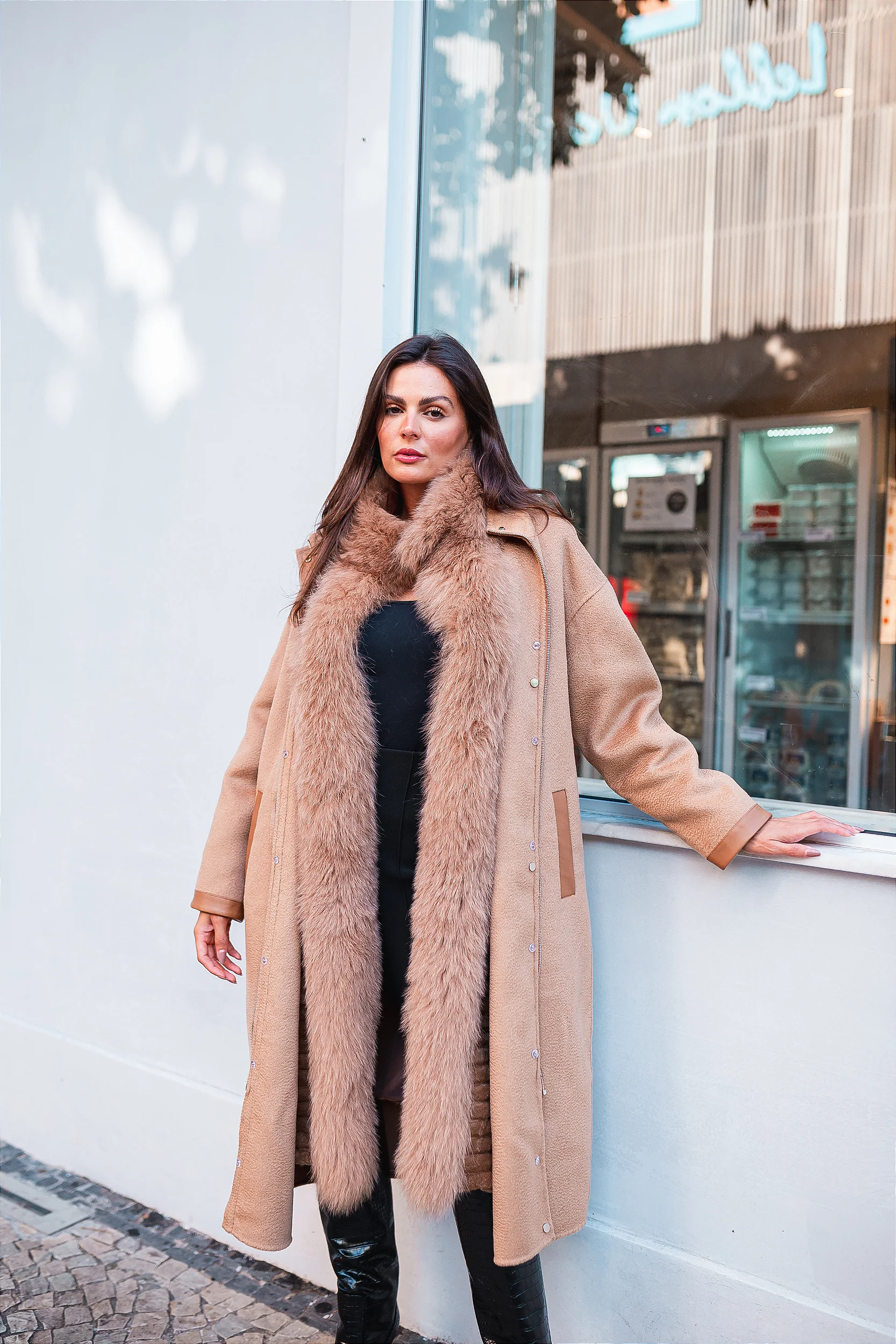 O Sobretudo Torino é confeccionado em lã batida com 35% de cashmere. A lã cashmere é conhecida por sua textura suave e leveza, enquanto a parte interna é de pele de raposa proporcionando um toque de luxo e exclusividade à peça. O luxo de adquirir duas peças em uma.